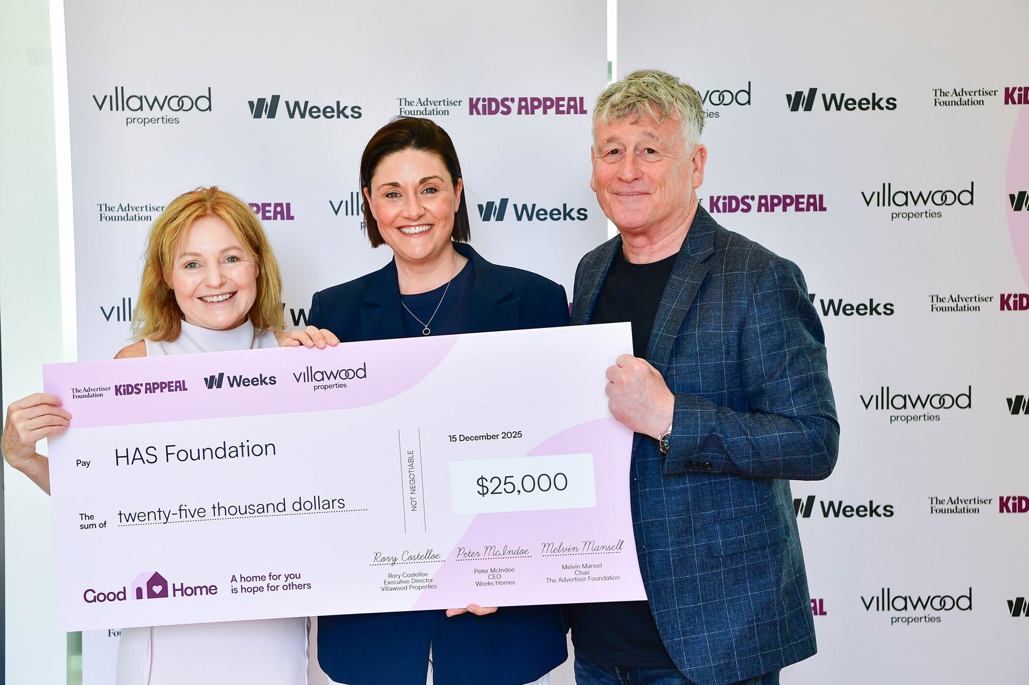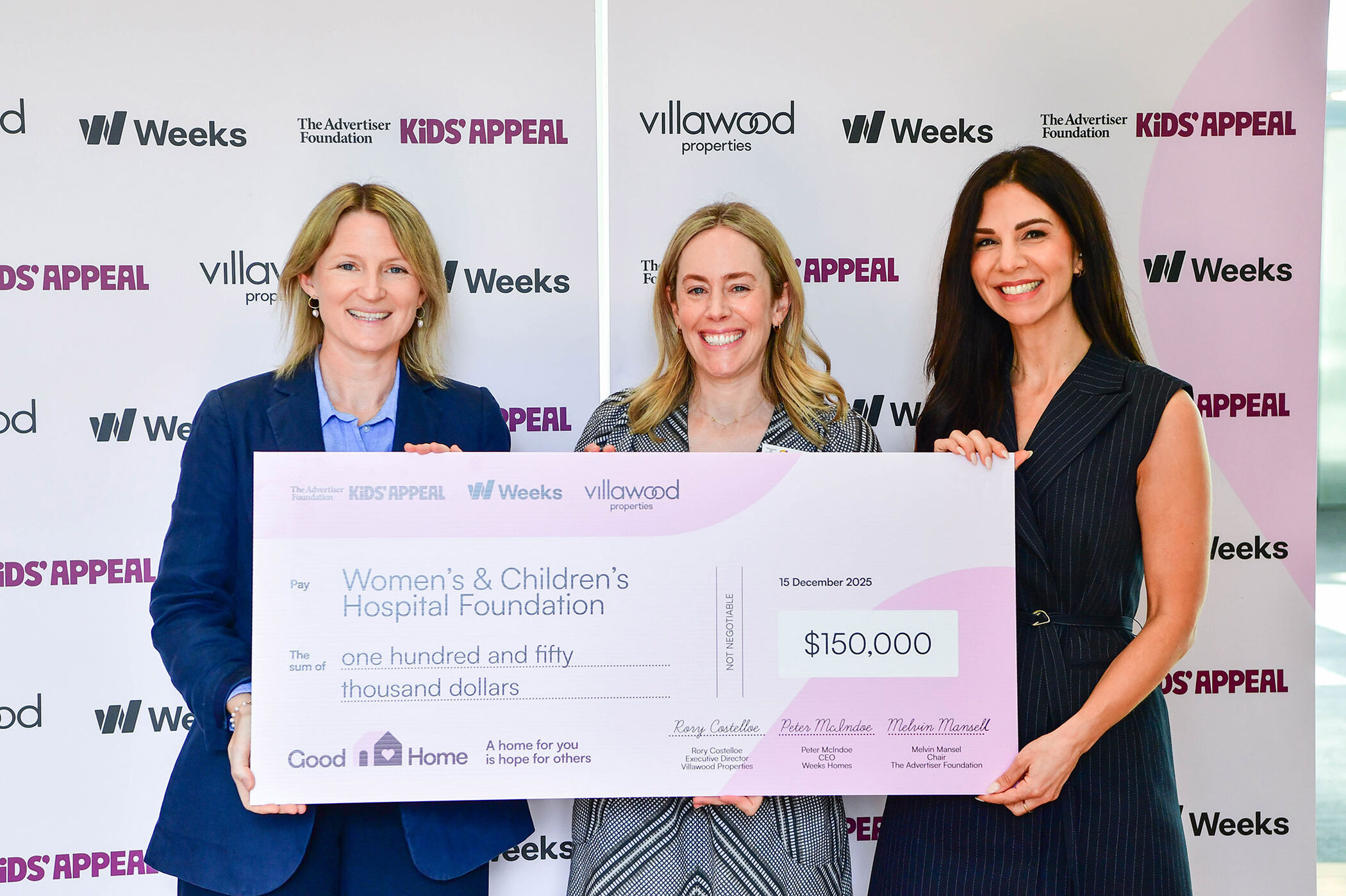 Huge thanks to Villawood Properties, Weeks Homes and their suppliers for donating $973,000 to The Advertiser Foundation's Kids' Appeal in 2025.